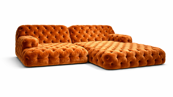 Chesterfield reloaded ‒ traditional craftmanship reinterpreted. Island of my dreams with soft, wave-like curves. Skillfully applied Chesterfield upholstery, snuggling heavenly to your body. Probably the most comfortable Chesterfield sofa in the world!
